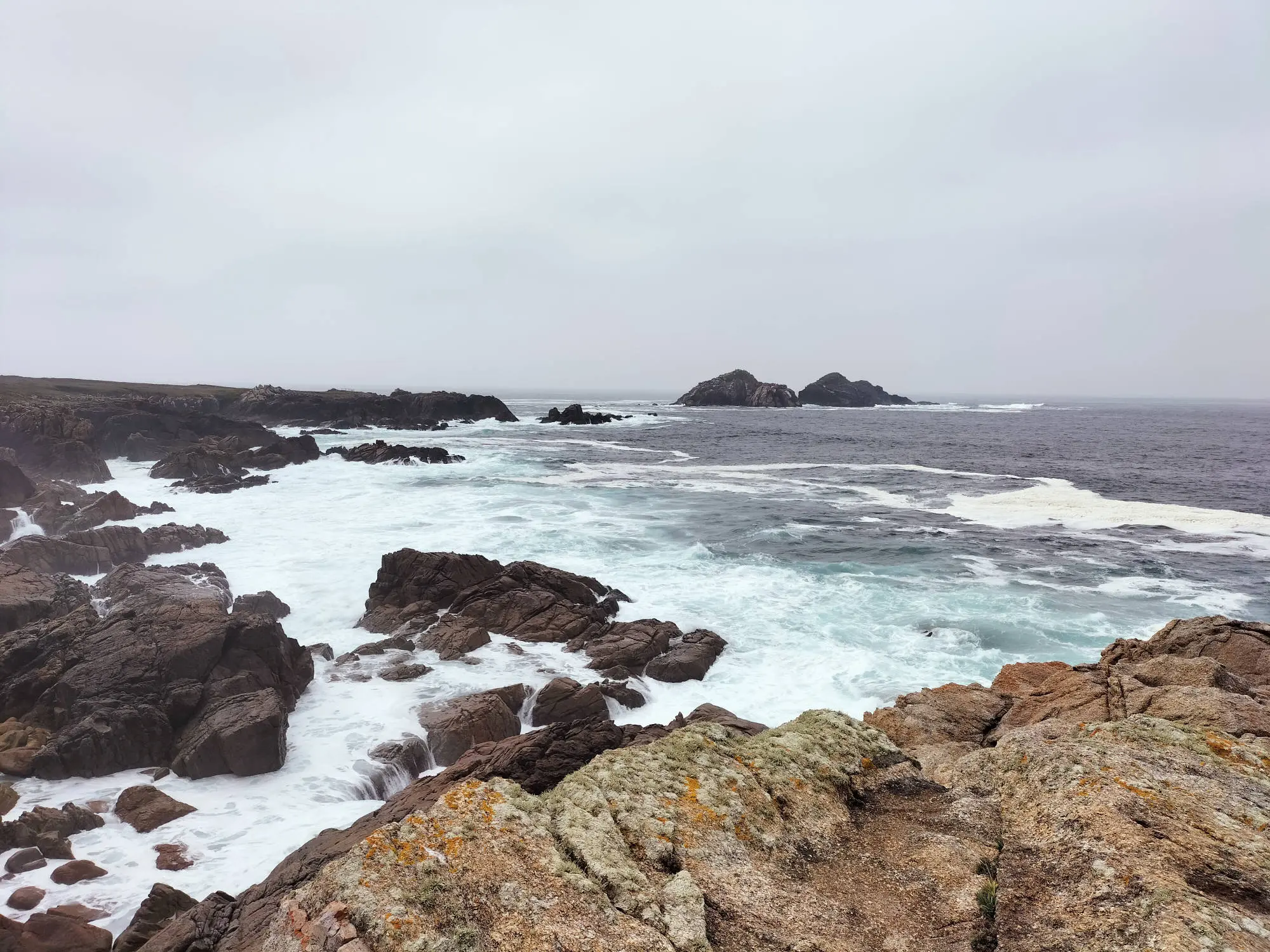 Comenzamos en el aparcamiento de la playa de Doniños. Dejamos el arenal a la izquierda desde la última de las pasarelas de madera y avanzamos pegados a la costa. Hay muchos caminos abiertos, algunos más fáciles y otros más al borde. Cualquiera nos vale.