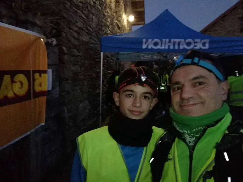 El material... Antes de la salida, nos preparamos. Lo primero, pasar a recoger los dorsales. En este caso no había dorsales, pero sí la tarjeta electrónica (sportident) para confirmar el paso por las balizas, mucho más cómodo que la tarjeta en papel que hay que picar con la pinza. Comprobamos la linterna frontal y los repuestos, la brújula, el chaleco reflectante y el móvil. Para el mapa aún debíamos esperar a la salida.