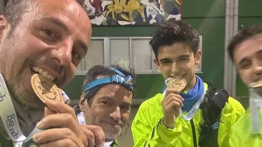 Entramos en el asfalto y nos gritamos unos a otros, que podemos, que no, que hay que intentarlo. ¡Quedan 6 minutos, que agobio! Cruzamos la carretera principal y reconozco la recta que da al polideportivo. Nico, Óscar y Matías aprietan pero me arrastran y acompañan. Llegamos al portalón y voy corriendo por debajo de 4 min/km. Creo que no soy consciente. Se oyen los altavoces animando, diciendo que quedan segundos para el cierre de meta. Llegamos los cuatro y casi me olvido de pasar la tarjeta. Nos dicen que entramos en tiempo: 88 min 49 segundos (Nico y Óscar 12 segundos menos). ¡Exitazo!