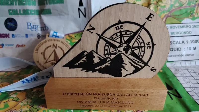 Ahora ya no hay frío. Descargamos los datos de las tarjetas, tomamos un caldito que sabe a gloria y comentamos la jugada. Desde luego estamos satisfechos. ¿Lo podríamos haber hecho mejor? Seguramente. ¿Podríamos haber disfrutado más? No lo creo. Aún quedaba otra sorpresa. El lunes, un alumno que también participaba me dice que recogió en nuestro nombre el trofeo al tercer puesto del trail corto. En la clasificación por tiempos quedamos entre el 15 y el 18, pero no estaba contabilizada la puntuación de las balizas. Oficialmente llamaron al pódium a Nico, pero desde luego el trofeo es para todos.